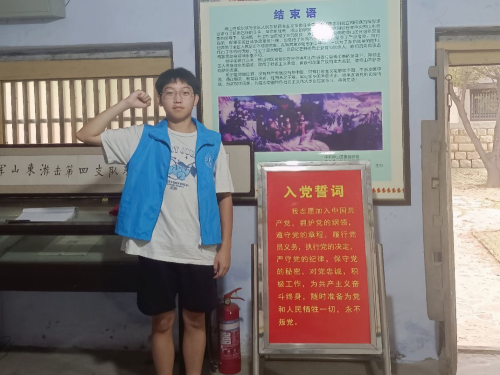 活动伊始,队员面向“不忘初心,永跟党走”的旗帜,重温入党誓词,将英雄抗战精神与红色精神紧密结合,感悟红色文化的独特魅力。队员采访了附近的村民,了解到假期来参观的游客络绎不绝,特别是青年大学生对抗战英雄的故事愈来愈感兴趣,对红色文化的理解愈来愈透彻,且愿意承担弘扬红色文化的历史重任。