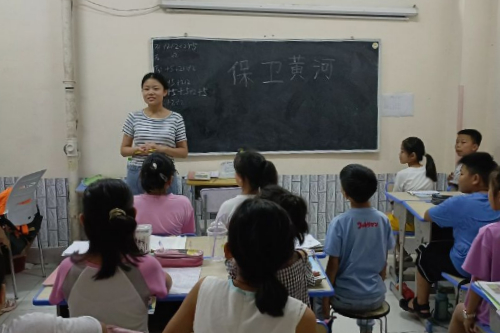 实践团成员在山东省德州市。德州市是黄河沿线的重要城市,近年来也在不断加强黄河文化的宣传与学习。“学习进行时,强国‘践’证行”实践团成员于2022年7月18日于德州市德城区为中小学生讲授黄河故事,同时进行了一系列与黄河文化有关的活动。学生们踊跃参加,深刻感受着黄河文化的魅力。