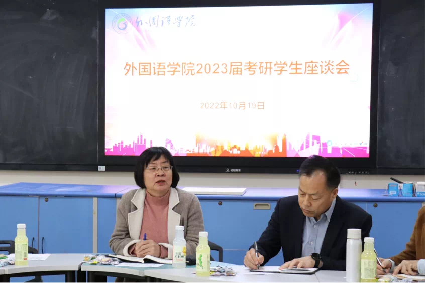 座谈会由学院党委书记李静、院长牛书田、党委副书记姜素锦、副院长张燕,学院各专业系室主任,辅导员王惠、邢琛及2023届考研学生代表参加,邢琛主持会议。