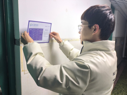 11日下午,主席团与学生进行交流,了解同学们宿舍日常生活情况,并协同为宿舍进行公约挂牌。此外,周君如呼吁学生牢记宿舍公约,以此为目标,激励学生在未来的生活中继续努力,彰显优秀外院人的风采。