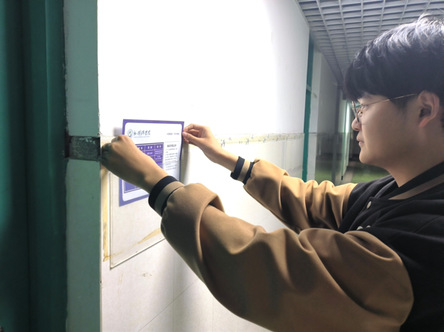 为引导学生构建整洁居住环境,营造积极向上寝室文化氛围,11月11日下午,我院在3号、4号学生公寓楼举行宿舍公约挂牌仪式,学院学生会主席团成员余尚晟、周君如、马晓乐、郭峰带领学生们积极参加。