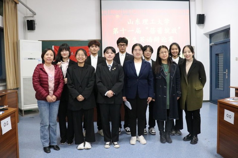 最终,评委老师据选手的表达流利程度及观点论据的有力程度进行商讨打分。经评定,孟宪鑫,张紫欣获得一等奖;刘晓彤,赵忠瑞获得二等奖;张秀蓥,胡芮绮,康毅,王梦茹获得三等奖,张紫欣获得“最佳辩手”称号。参赛选手和老师们合影留念。