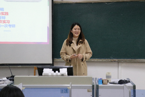 随后,孙立用详实的图片和资料展示了大学生活的多样滋味,讲述了自己大学四年的经历感受,用生动的故事、真实的情感打动了在场的每一位同学。同时,她结合自身经历从学习方法、学生干部任职、考验备考择校三方面与到场同学进行交流分享,希望同学们大学期间珍惜时间,自觉励志勤学,主动向身边的青年榜样看齐,争做新时代的奋进青年。最后,孙立鼓励同学们要善于找到属于自己的学习和生活方式,保持乐观开朗的心态,积极通过体育锻炼,强身健体,锤炼意志,做到德智体美劳全面发展。