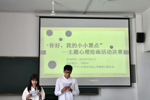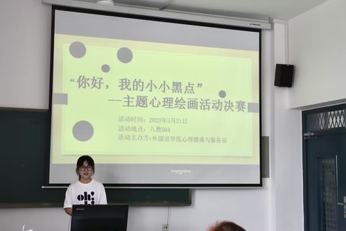 为增强学生心理健康意识,提高学生心理健康素养,营造健康和谐的校园心理文化氛围,5月21日下午,“你好,我的小小黑点”主题绘画活动决赛在8号教学楼504教室举办。此次比赛由学生工作处、学生心理健康教育与咨询中心主办,外国语学院承办。大学生心理中心王素霞老师,学院英语教育系李金凤老师,学院心理辅导员邢琛老师担任评委,各学院通过第一轮选拔的优秀选手参赛。