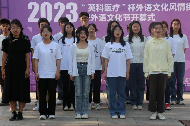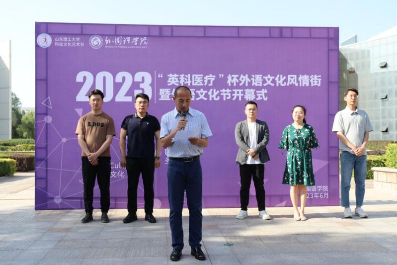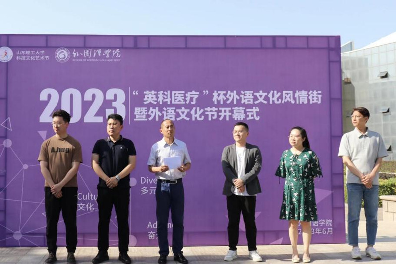 为进一步浓厚学校的外语文化氛围,增强学生的语言学习兴趣,丰富校园文化活动,6月1日下午,我院在8号教学楼西侧广场举行外语文化风情街暨外语文化节开幕式。校团委宣传部部长马超、英科医疗科技股份有限公司人力资源经理杨修明、外国语学院全体辅导员及21、22级学生参加此次活动。