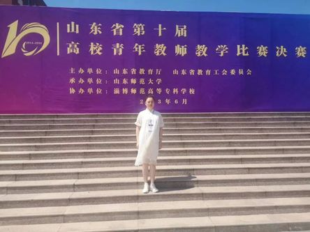 6月18日,山东省第十届高校青年教师教学比赛决赛在淄博师范高等专科学校举行,比赛由省教育厅、省教育工会委员会主办,山东师范大学承办,淄博师范高等专科学校协办。决赛共有154名选手,以现场比赛的方式进行,包括课堂教学和教学反思两个环节,由选手现场从20个节段中随机抽取一个,进行课堂教学并现场进行教学反思。我院教师刘莎以清晰的思路、明确的观点、流畅的表达展现了深厚的教学功底和良好的综合素质,最终获得了二等奖的好成绩!