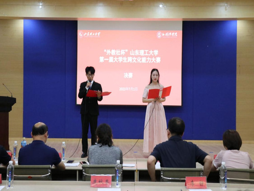 为深入学习贯彻党的二十大精神及学校第四次党代会精神,助力培养具有跨文化沟通能力的国际化人才,6月30日至7月1日,学校举办山东理工大学第一届大学生跨文化能力大赛暨第六届“外教社杯”全国高校学生跨文化能力大赛校内选拔赛。此次比赛由教务处、创新创业学院主办,外国语学院承办,山东理工大学教务处处长庞秋香、外国语学院党委书记李静、院长牛书田出席参加,外国语学院副院长张雷,岳红丽、彭静、谭洪进、亓云、陈顺利、邢蕾、李婷等专业教师担任评委,来自全校20个学院近60余名同学参赛。
