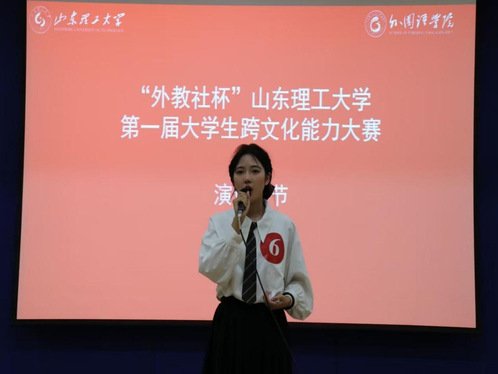 决赛于7月1日下午在山东理工大学图书馆负一层报告厅举行。首先,外国语学院院长牛书田讲话。他向晋级的选手表示祝贺,并希望广大学子聚焦以下三个方面,增进国际理解,提升跨文化能力:一是精准领悟中国文化的内涵;二是采用合适的方式讲好中国故事;三是选取正确的媒介传播中国故事。最后,他祝愿参赛选手赛出水平,赛出风格。