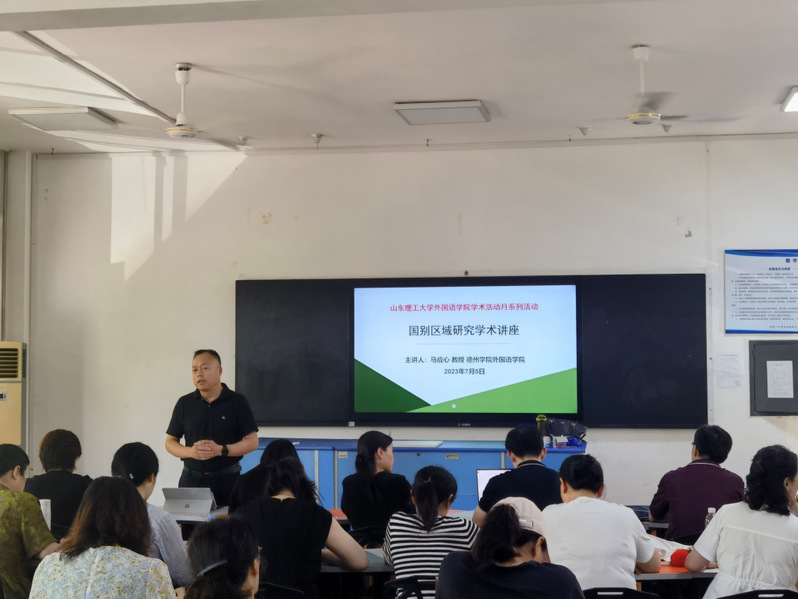 2023年7月5日,外国语学院首个区域国别研究讲座在8号教学楼218教室举行。此次讲座特邀教育部高校国别和区域研究备案中心东盟研究中心执行主任、德州学院教授马应心主讲,我院院长牛书田主持,学院班子成员、系部主任、“英阿双语全球胜任力”微专业任课教师、有一定区域国别研究基础的老师50余人参加。