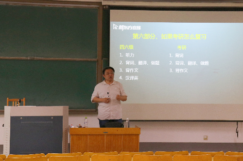 为助力学生大学英语四六级备考,形成良好英语学习氛围,外国语学院于5月22日1下午在3号教学楼202教室开展第三届“大学英语学习月”系列活动之“良师良言”公益讲座——黄培辰大学英语四六级考前指导专场。此次活动特邀新东方教育集团资深讲师黄培辰老师主讲,外国语学院李楠老师主持,各学院学生踊跃参加。