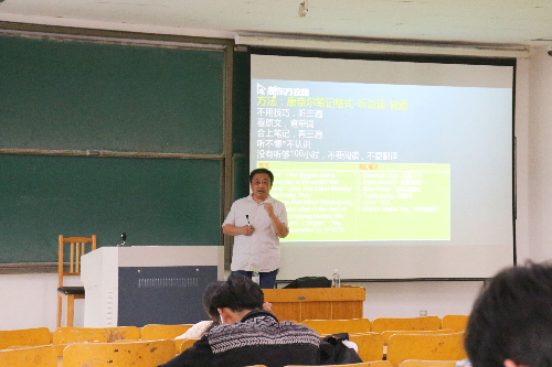 黄老师将此次考前攻关讲座从听力、翻译、作文、阅读理解各部分出发,以其幽默生动的口吻讲解了四六级备考中常见的困难并提出简明有效的破局方法。他从英语应试与英语能力提升的异同点出发,强调了坚持听力练习对于提升英语能力的多方面帮助,提出了模板对于写作的重要性。此外,他还对作文、翻译的选题热点进行了预测与得分技巧指点。最后,黄老师强调了英语学习对个人学业、职业发展的重要性,建议学生们要在大学这个人生的黄金时期,努力提升英语能力,为今后的发展奠定坚实的基础。并指出四六级的备考与考研备考有一定的相承性,以四六级的努力备考以考促学,对有考研打算的学生至关重要。在黄老师明快幽默的讲解下,学生们受益良多。
