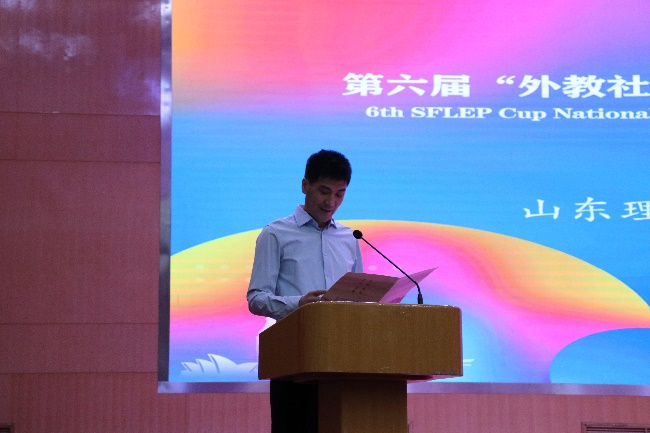 山东理工大学党委常委、副校长陈靖代表学校致辞。陈靖向本次比赛的评委专家、主办方及各工作人员表示衷心感谢,向获奖院校和师生表示热烈祝贺。他在致辞中指出,推进构建“人类命运共同体”更需要大批立足祖国、胸怀天下、具有家国情怀、国际视野和跨文化交际能力的人才。本次大赛为广大同学搭建了培养跨文化能力、展现新时代青年风采的平台。希望未来有更多的省内青年能够走上国家、世界舞台,推进中外人文交流,讲好中国故事,传播好中国声音,为构建人类命运共同体贡献青春力量。陈靖还介绍了山东理工大学学科专业布局和校城融合发展机制。