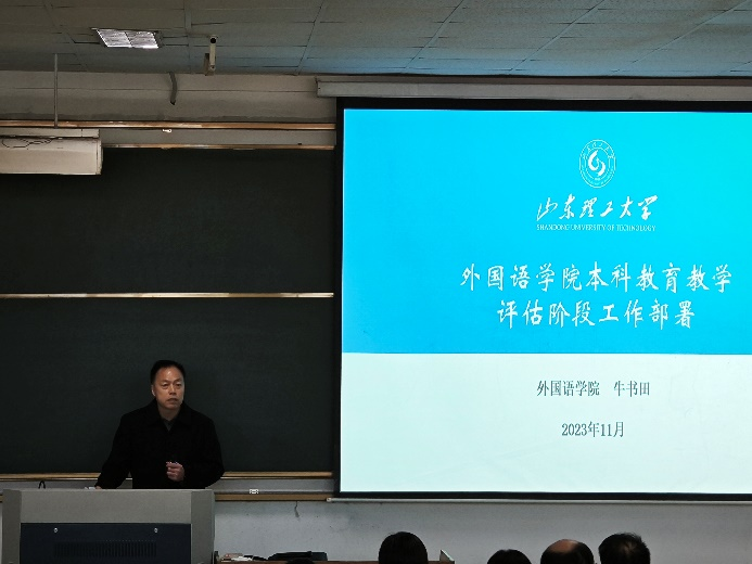 院长牛书田向全体教职工传达了学校迎评工作精神,对学院的前期迎评准备工作进行了简要介绍,并对后期重点工作任务进行了动员部署。牛书田针对学院教学准备、教师课堂教学、学生上课表现等环节存在的问题作了分析,并要求全体教师提高认识,认真整改,切实落实好学校学院审核评估的各项工作部署,做到教师课堂教学程序规范,学生学习气氛浓厚,形成良好的教风学风。最后,他对学院本学期以来各项工作取得的成绩进行了简要回顾。