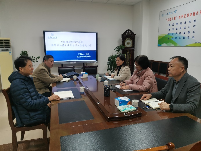 调研伊始,副院长张燕围绕外国语学院2023年度国家社科基金项目申报的组织推进工作进行了汇报。