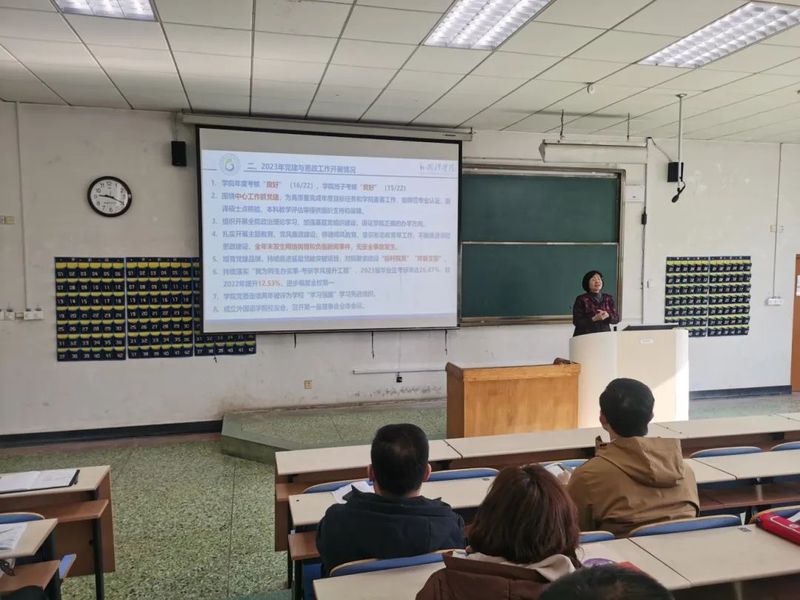 李静代表班子成员,结合2023年学院教学、科研、人才培养、关键指标和学生就业等工作推进和完成情况进行了回顾总结,围绕党建发展、师德师风、意识形态、安全稳定等方面进行了工作部署,针对学院当前存在的问题和今后重点工作方向进行了深刻的梳理和分析。李静指出,新学期开学,全体教职工及时调整工作状态,提前做好教学、科研、管理等工作筹划,确保各项工作快速高质量展开。李静强调,2023年学院事业发展取得了新成效,但也要正视学院发展过程中面临的机遇和挑战、重点和难点,希望全体教职工团结一心、凝聚共识,围绕中心工作,为学院高质量发展贡献新的更大力量。