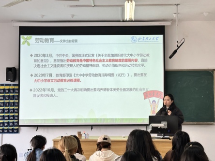 邢琛从劳动教育的意义、学校劳动教育开展成效、劳动纪律、考核标准和评优办法等五个方面对本次劳动教育体验周进行了详细解读,提醒同学们要高度重视本次劳动教育体验周,在劳动中贡献自己的力量,在实践中成长、实现自我价值,在劳动中遇到问题,及时联系反馈,活动结束后及时总结,分享心得体会。