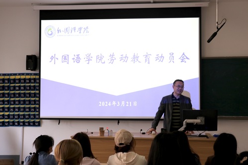 为贯彻落实劳动教育理念,引导青年学生崇尚劳动、尊重劳动、热爱劳动,推动学生德智体美劳全面发展。3月21日,外国语学院于8号教学楼217教室召开本学期劳动教育动员会。学院党委副书记宋伟、物业服务中心实践指导教师邢晓庆、2023级辅导员邢琛以及前五周参加劳动教育的同学参加会议。