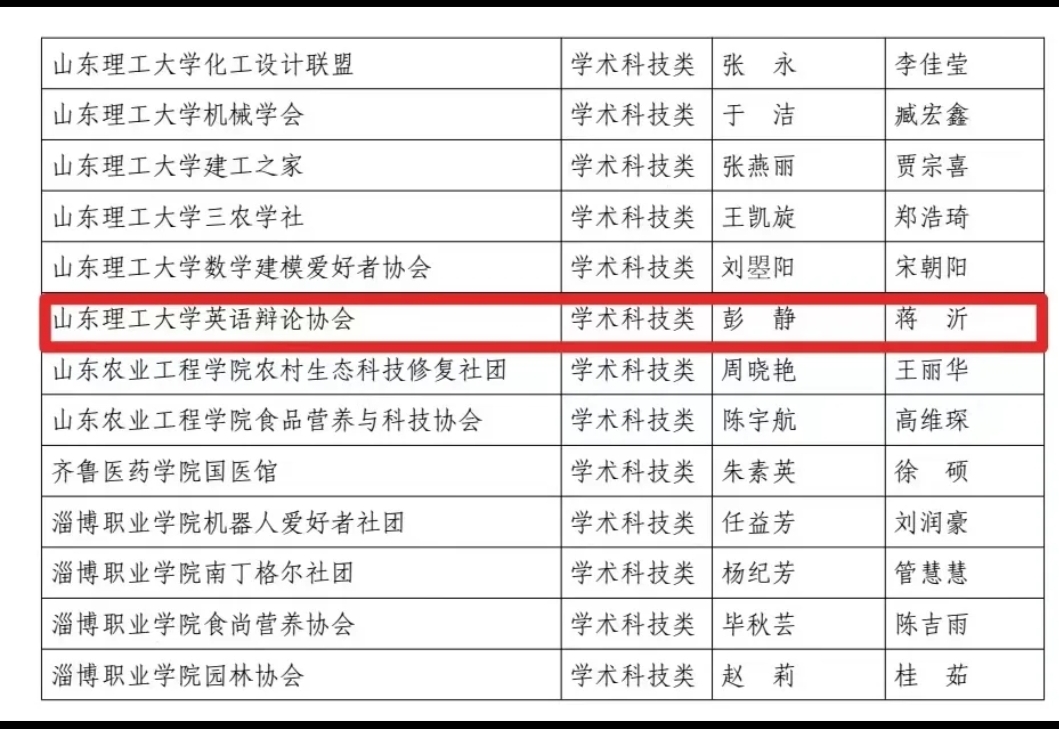 根据《乐鱼网页版开展 2023 年度淄博市“百佳高校学生社团”寻访活动的通知》要求,拟确定山东理工大学研究生时政宣讲团等100 个社团为2023年度淄博市“百佳高校学生社团”,其中我院英语辩论协会荣列其中!