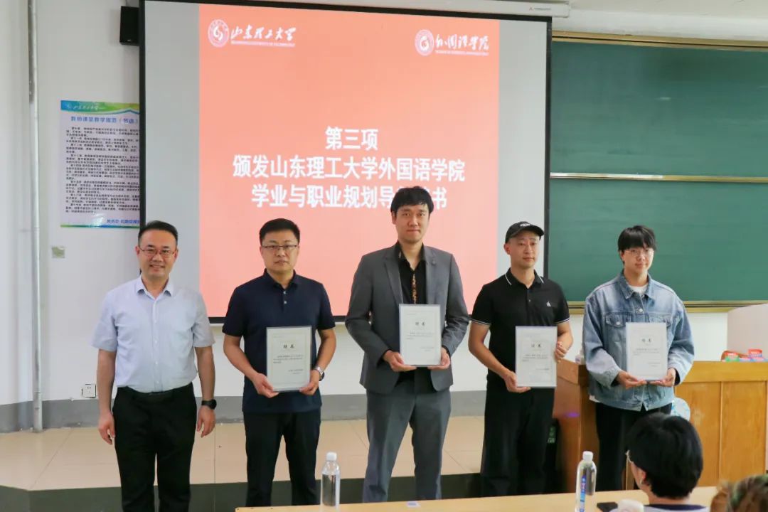 会议第二阶段,宋伟为山东齐教教育集团王珂、李剑桥、韩特、范子亮颁发乐鱼网页版学业与职业规划导师聘书。