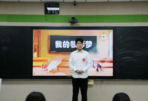 本次演讲比赛中,参赛师范生们紧扣“我的教师梦”这一主题,从个人学习成长经历、教育实践体会以及对教师职业的理解与憧憬等多方面讲述自己的教师梦。在这场演讲大比拼中,参赛者们以流畅优美的言辞、独特鲜明的见解,以及条理清晰的思路,表达了内心对教师梦的真挚情感和对未来教师职业生涯的美好憧憬。参赛者们巧妙地运用条理清晰的PPT、抒情的背景音乐和生动形象的表情动作等辅助演讲手段,令在场评委和观众置身于一个个令人感动的“教师梦”故事之中。