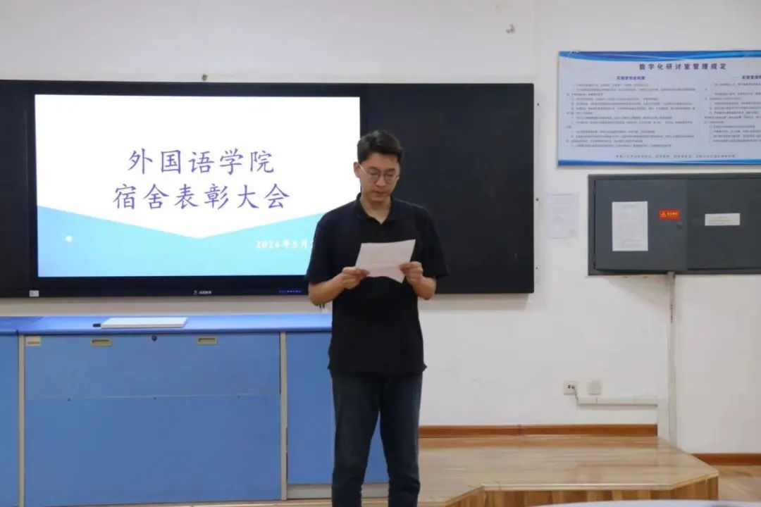 最后,崔鹏对本次表彰大会进行总结。他表示学院高度重视宿舍文化建设,努力为同学们打造文明、和谐、卫生的宿舍环境,本次的宿舍表彰会是学生表彰体系的重要一环,也是推进学院“一站式”服务社区建设的重要保障。同时,崔鹏还勉励同学们以本次文明寝室评选为契机,进一步加强宿舍文化建设,发挥示范引领作用,带动形成优良舍风班风。