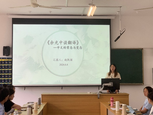 张燕以向大家推荐的《中式英语之鉴》《余光中谈翻译》《当代翻译理论》三本书籍为例,表达了汉译英过程中审校能力提升的重要性,并表示读书会是一个系统而有序的知识输入过程,通过系统深入阅读,提升学术能力,拓展学术素养。
