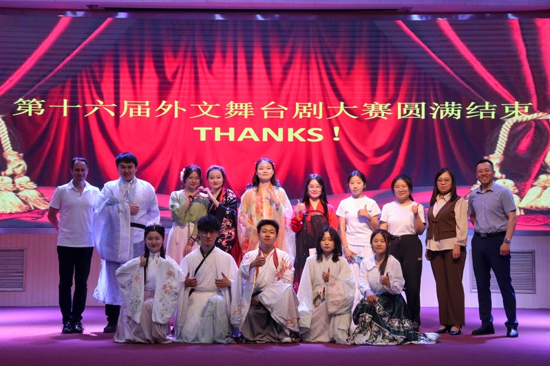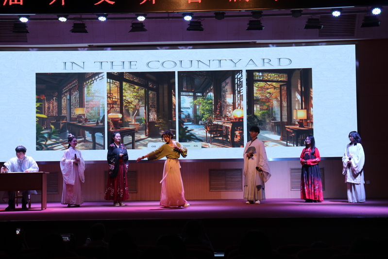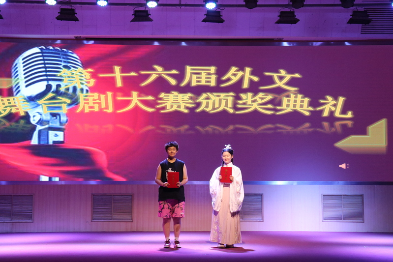 为弘扬传承中华优秀传统文化,展现当代大学生风采,由我院承办的第十一届科技文化艺术节“传承经典”英文舞台剧大赛决赛于6月11日晚在三号报告厅举行。外国语学院教师郑海舰、赵莉、外教Dave担任评委。此次比赛共有来自全校的8个团队参加,他们一起打造了一场外语戏剧的盛宴,带领同学们领略了语言与表演交织的绚丽华章。