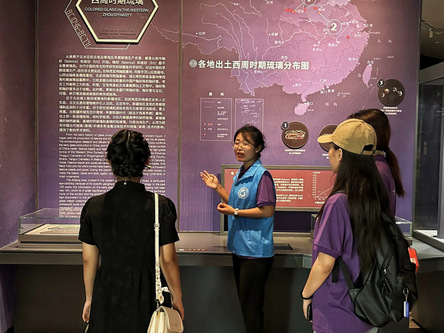 实践团成员在活动开始前查阅了大量的相关资料,将理论知识与实际展品结合,开展了志愿讲解服务。成员们在讲解过程中结合馆内的“数字化云端展览台”向游客讲解陶琉文化的内涵,不仅注重历史的准确性,还综合考虑了游客的接受程度,用通俗易懂的语言和生动准确的比喻,让游客更深入地了解陶琉文化。通过提供高水平的志愿讲解服务,帮助参观者了解、明晰展厅内容,拥有更好的观览体验。