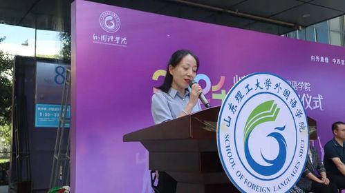 仪式第一项,英语系主任毛毳致辞。她首先对2024级新同学的到来表示热烈欢迎和衷心祝贺。接着她对全体新生提出三点期望:第一,做自己的代言人。大学是一个自我塑造的过程,希望全体新生能珍惜时光、勇敢创新,为未来打下坚实基础。第二,做家乡的代言人。希望同学们能讲好中国故事,并用心感受淄博的深厚底蕴。第三,做文明的代言人。尊重不同文化的存在,并不断探索“新质传播力”。