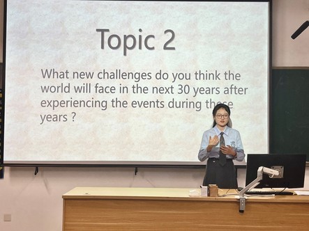 赛前,主持人介绍此次演讲比赛的规则和流程。本次比赛设有命题演讲、自选命题演讲、评委提问、活动颁奖四个环节。评委老师将从发音、流畅度、体态等多维度考察打分。