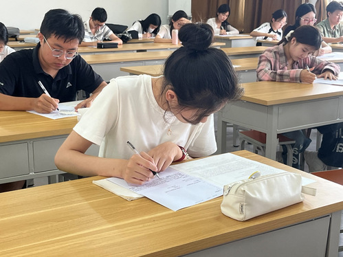 比赛现场秩序井然,监考老师们认真负责,确保比赛的公平公正。选手们全神贯注,严格遵守比赛秩序。他们目光坚定,态度严谨,字斟句酌,确保译文的准确性、流畅性和专业性。这种精益求精的精神,不仅体现在对语言细节的精确把控上,更渗透到了对文本深层含义的透彻理解和恰如其分的表达之中。