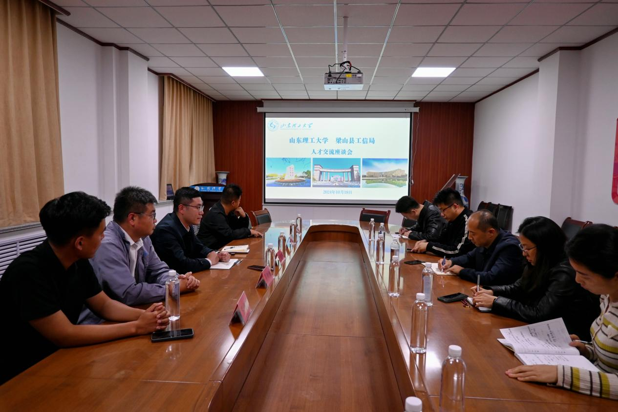 为进一步强化校企合作,有效推进教学深度育人工作,拓宽学生的就业渠道,提升人才培养质量,10月18日下午,我院与梁山县工信局领导在八教111会议室开展交流合作。梁山县专办常务贾春晖、凯利重工有限公司副总吴则栋、副秘书长谭文静、人力资源主任李沐源、董事长助理邓祥合、学院团委书记、学生工作办公室主任崔鹏、辅导员马梓轩参加座谈。
