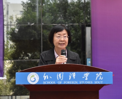 仪式第一项,商务英语系主任贾玉洁致辞。她首先向全体2025级新生表示热烈欢迎和衷心祝贺。随后她阐述了AI时代外语专业的独特价值,强调外语学习是重构认知、拓展边界的过程,并依托“厚德、博学、笃行、至善”的校训与“内外兼修,中西贯通”的院训精神,培养跨文化整合力与文化洞察力。最后,她对全体新生提出四点建议:明确学习目标、强化实践应用、提升人文素养、坚持持续迭代。鼓励新生以语言为翼,成长为兼具国际视野与中国情怀的优秀外语人才。