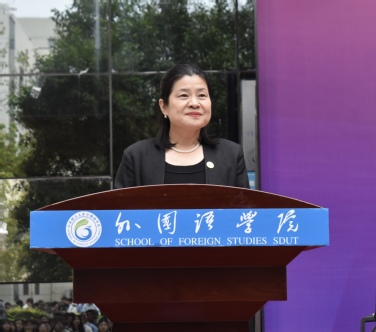 仪式第四项,学院党委书记李静讲话。她首先回顾了学院自成立以来的发展历程,介绍了学院在学科建设、师资力量以及学生培养等方面取得的成就,同时向同学们提出了三个方面的殷切期望:一是要筑牢理想信念“压舱石”,使青春航向不偏航,二是要深耕专业领域“责任田”,为职业发展筑根基,三是要练就全面发展“真本领”,让人生出彩有底气。她勉励全体新生树立远大理想,在实践中全面发展,成长为“内外兼修,中西贯通”的优秀外语人才。最后,她祝愿同学们在外院的每一天都因收获而快乐,因进步而幸福。