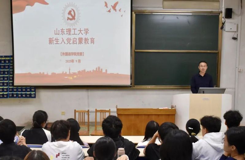 为深化理想信念教育,号召新生积极向党组织靠拢,9月28日,我院于4号教学楼103教室举行新生入党启蒙教育大会。大会由外国语学院党委副书记、纪委书记宋伟主讲,2025级全体本科生及研究生参加。会议由学院团委书记、学生工作办公室主任崔鹏主持。
