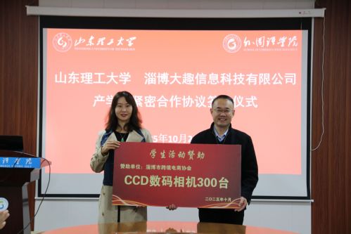 为推动淄博市跨境电商发展,助力外语复合型人才培养,10月29日,我院在8号教学楼111教室举办山东理工大学与淄博大趣信息科技有限公司产学研紧密合作协议签约仪式。淄博大趣信息科技有限公司董事长康辉,淄博市跨境电商协会会长、大趣信息科技有限公司总经理孙朋,淄博市跨境电商协会秘书长王一一等代表应邀出席,乐鱼网页版党委书记李静,山东理工大学合作发展处副处长李忠华以及学院领导班子成员及教师代表参加会议。会议由副院长于志涛主持。