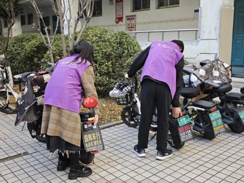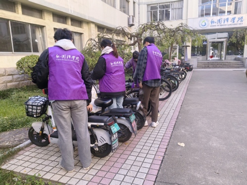 活动期间,师生预备党员身着志愿马甲,秉持责任担当,充分发扬不怕苦、不怕累的优良作风,针对散乱停放在楼道入口、通行路口及绿化带周边的电动自行车开展集中规整。大家齐心协力,将车辆逐一移至指定停车区域,做到整齐摆放、车头朝向一致,有效改善了校园局部区域停车无序问题。