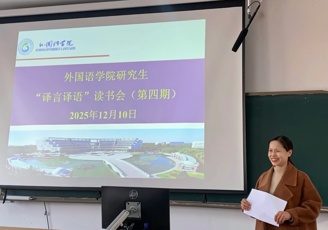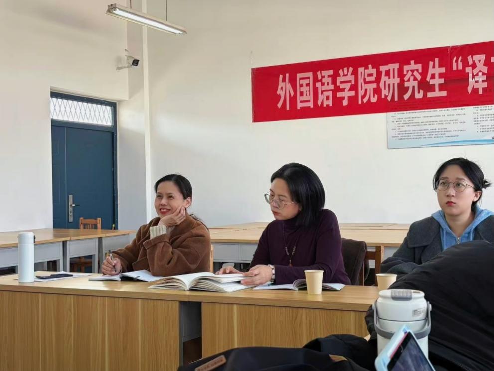 为进一步提升翻译硕士研究生对齐文化的跨文化阐释能力与翻译实践水平,12月10日下午,我院于8号教学楼507教室举办外国语学院研究生“译言译语”读书会(第四期)活动。本次活动由学院研究生会学术部策划组织,学院副院长张燕、翻译硕士中心主任樊丽霞、辅导员马宇晗老师担任嘉宾老师,2024、2025级研究生参加。