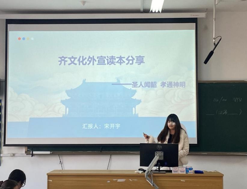 本次读书会以我院翻译硕士导师合译的《齐文化外宣读本》(山东人民出版社,2020年)为研读书目。该书采用中英对照的形式呈现齐地历史人物、文化脉络、民间传说与经典故事,展现了齐文化的主要风貌,是齐文化外宣的重要载体。