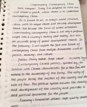 活动期间,学生围绕“用英语讲述中国故事”主线,将语言学习与内容理解相结合。作品形式包括:梳理中国式现代化五大特征的英文思维导图、阐述共同富裕实践的全英文视频、体现人与自然和谐共生理念的创意书籍封面等。多种形式的作品展现了学生良好的英语运用能力与深入的文化思考。