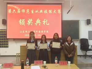 激烈的比拼过后,大赛进入颁奖环节。经过评委组的专业评审,吕小冉、张帆和李晗静三位同学获一等奖;裴庆琪、张含玉、张馨仪和尹孟磊四位同学获二等奖;陈鹏翔、王乙竹、郑灿、刘鑫宇和吴怡晓五位同学获三等奖。彭静、亓云和丁念亮三位老师为获奖选手颁奖,并向他们致以热烈的祝贺。