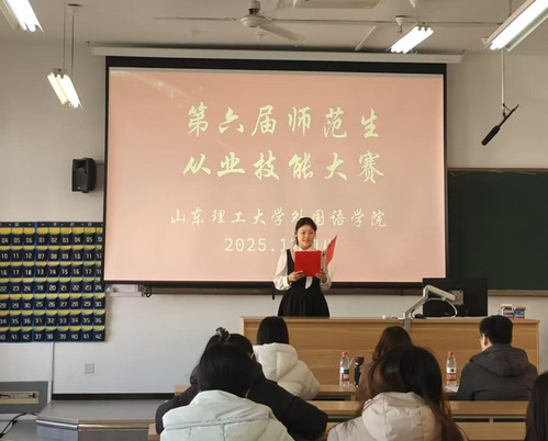 为夯实师范生教学基本功,提高2023级英语(师范类)专业学生的从业技能与综合素养,我院于12月14日下午在8号教学楼416顺利举办第六届师范生从业技能大赛。本次大赛聚焦教学设计能力比拼,吸引了来自2023级四个班的12名英语(师范类)专业的学生同台竞技,学院教师彭静、亓云和丁念亮受邀担任评委。