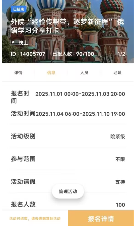 针对新生入学后普遍面临的环境适应、学习模式转换、专业入门等现实困惑,同时结合高年级学生积累的丰富学习经验,社团秉持“服务同学、助力成长”的宗旨,在活动前期通过线上问卷精准调研新生需求,内容涵盖专业学习方法、大学俄语四级备考、校园资源利用及课余生活安排等多个方面。在此基础上,社团邀请了多位学业优秀、实践经验丰富的高年级学生组成分享团,为新生提供针对性指导。